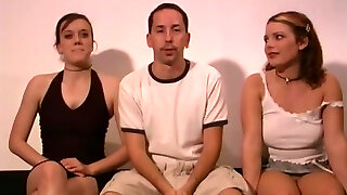 Meaty dude enjoys fucking two amateur bitches in FFM scene