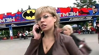 Brunette mommy in glasses deep gullets hard dick near the truck