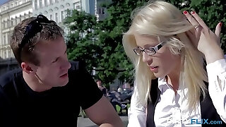 Nerdy blonde in glasses Nancy Ace turned to be nasty and naughty girl