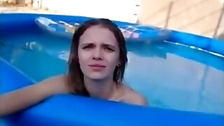 Blondie slut with meaty tits gets fucked in an inflatable pool