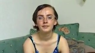 Nerdy short haired lady in ugly lingerie flashes her innate titties