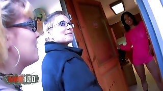 Hot amateur FFM act with ebony teen and ugly brunette MILF