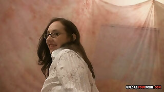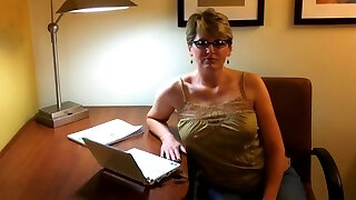 First-timer BBW Brunette With Glasses Fucks Dildo