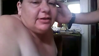 An ugly white blonde Bbw mature lady on the bed undresses on cam