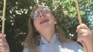 Nerdy Euro girl Amy gives head to a fat ugly and older dude