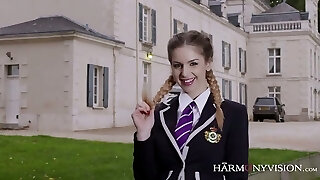 Just cosseted coed girl in uniform Stella Cox fucks with two strong professors