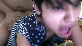 Two slutty Russian teen suck cocks and get pounded stiff live
